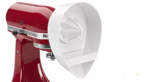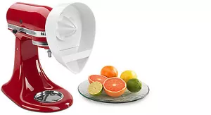 Use the power of your KitchenAid Stand Mixer to juice citrus fruits quickly and easily. Ideal for working with large quantities of citrus fruits, this attachment rapidly extracts juice from handheld fruits directly into a bowl, pitcher, or measuring cup, catching seeds in a built-in strainer.
