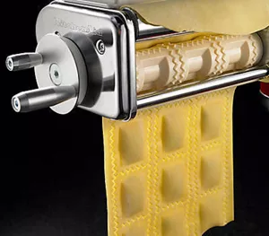 Use the power of your KitchenAid Stand Mixer to bring the taste of fresh pasta into your home. The ravioli maker lets you manually guide two sheets of fresh pasta through the hopper, filling the pockets with whatever combination of ingredients you choose. Recommended for use with the KitchenAid Pasta Roller attachment (KPSA, sold separately).